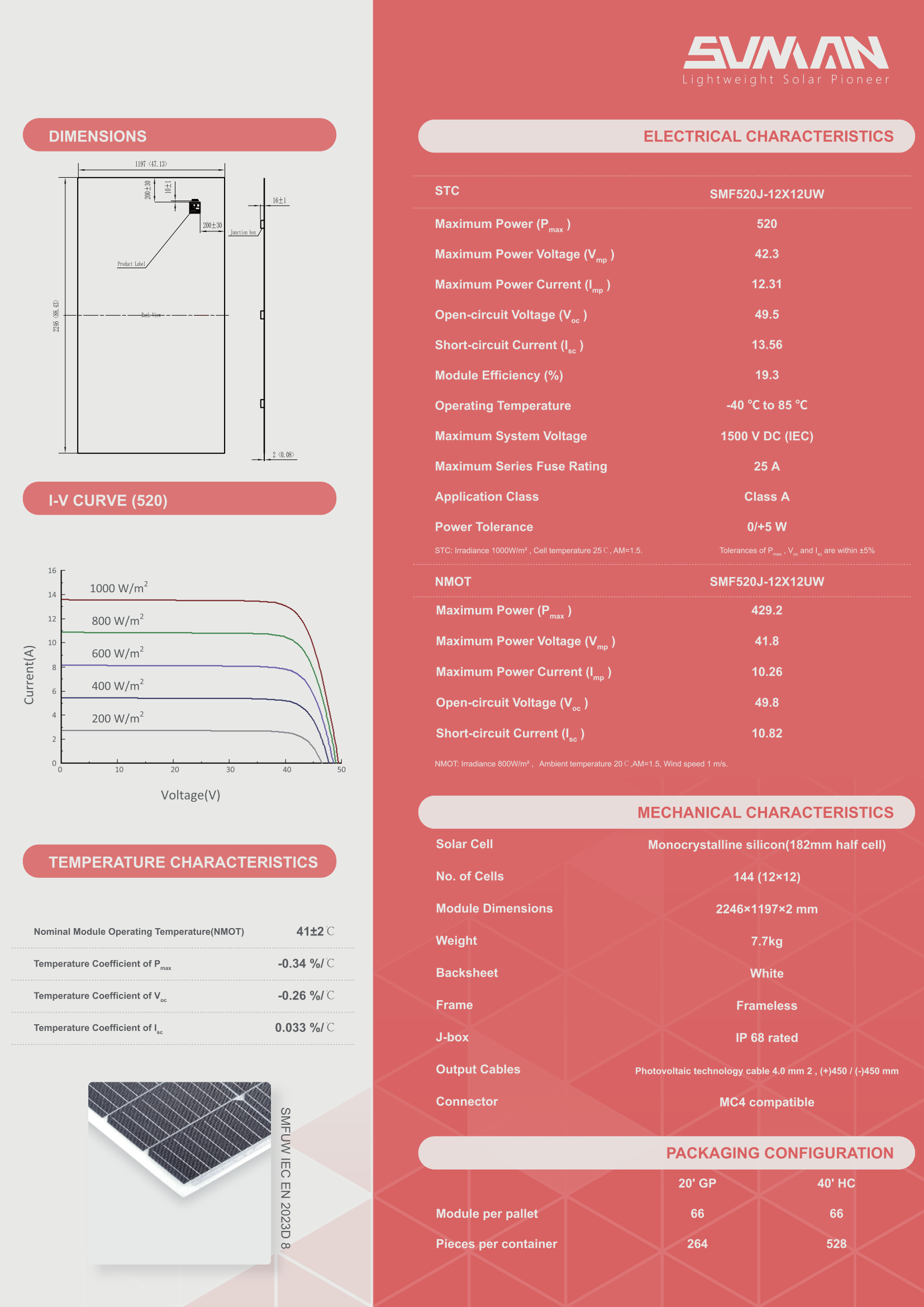 Ultra-light Weighs only 2.8kg/㎡ 70% lighter than glass modules |