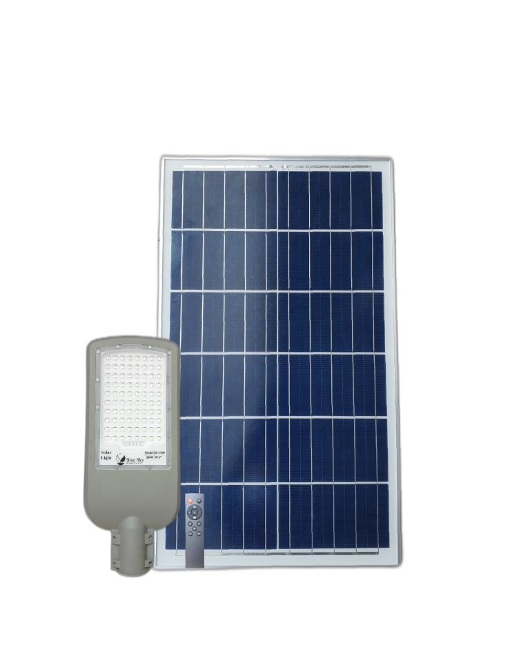 Đèn đường năng lượng mặt trời BlueSky BLS200 – 200w được thiết kế có khả năng chống thấm cao. Các bóng LED được tạo thành từ các hạt hình chữ nhật đạt chỉ số màu cao, với cường độ ánh sáng lên tới 3000 lumem. Thời gian sạc của đèn từ 4 đến 6 giờ và thời gian phóng điện từ 20 đến 22 giờ. Cấp chống nước IP67, chống va đập chuẩn IK08, đủ chống chịu với khí hậu nhiệt đới gió mùa ở Việt Nam. Phạm vi độ sáng rộng, diện tích chiếu sáng lên đến 130 mét vuông.