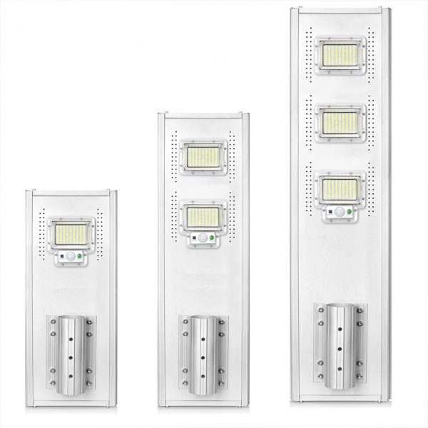 Bộ bóng đèn đường năng lượng mặt trời liền thể 200W JD-A200 mẫu mới tiện lợi cho nhu cầu chiếu sáng lối đi khu vực sân vườn nông thôn, sản phẩm tích hợp pin mặt trời, pin lithium, nguồn sáng LED, cảm biến hồng ngoại cơ thể con người, bộ điều khiển hệ thống năng lượng mặt trời, khung nhôm và giá lắp.