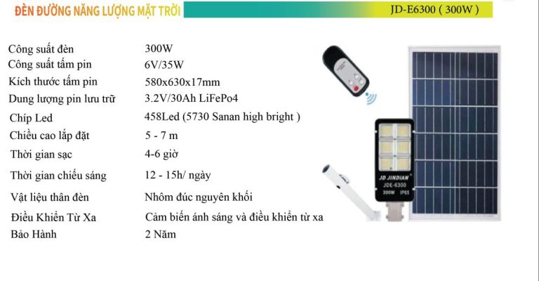 - Đèn đường năng lượng mặt trời JD-E6300 công suất 300W