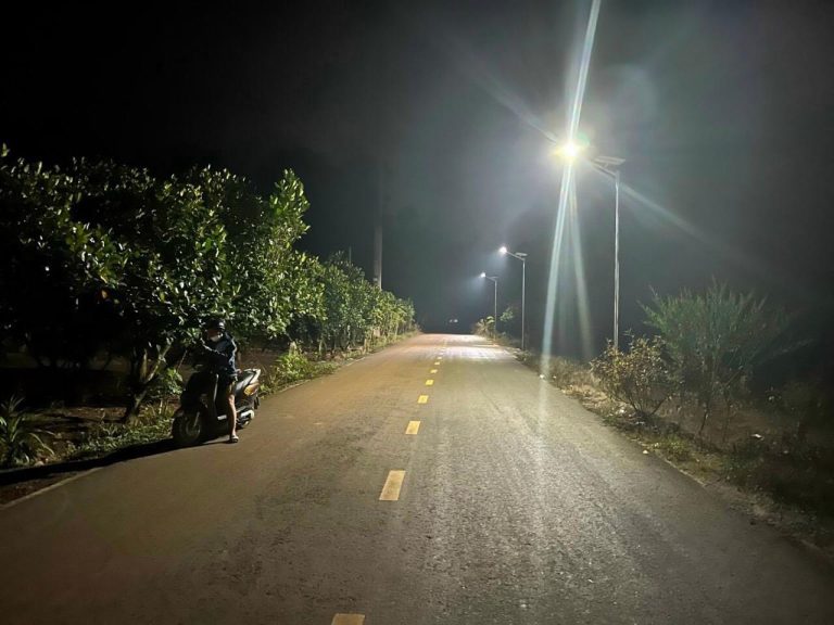 - Sản phẩm gồm: đèn đường + tấm pin năng lượng mặt trời + điều khiển từ xa