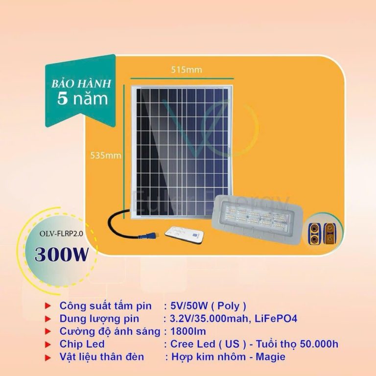 Hãy cùng tìm hiểu các chi tiết và đặc điểm nổi bật của Đèn Năng Lượng Mặt Trời Euler Energy OLV- FLRP2.0(300W) nhé. Nếu bạn quan tâm đặc biệt đến chất lượng của sản phẩm, mong muốn lựa chọn cho mình sản phẩm cao cấp thì các điểm dưới đây sẽ rất hữu ích cho bạn.