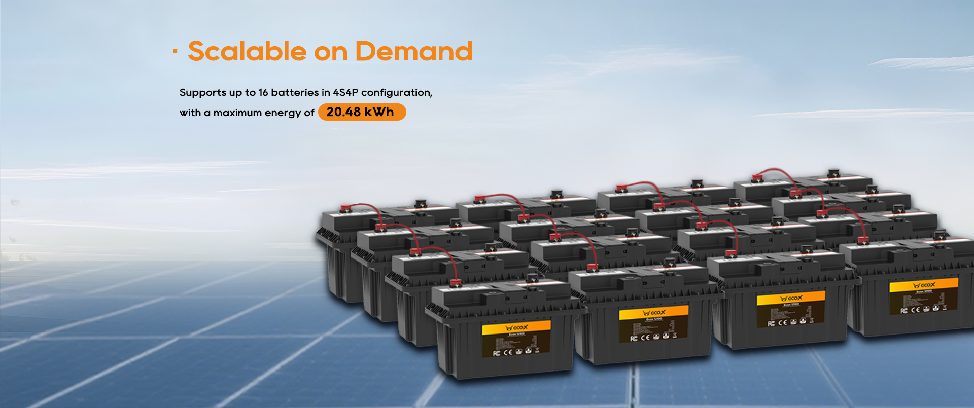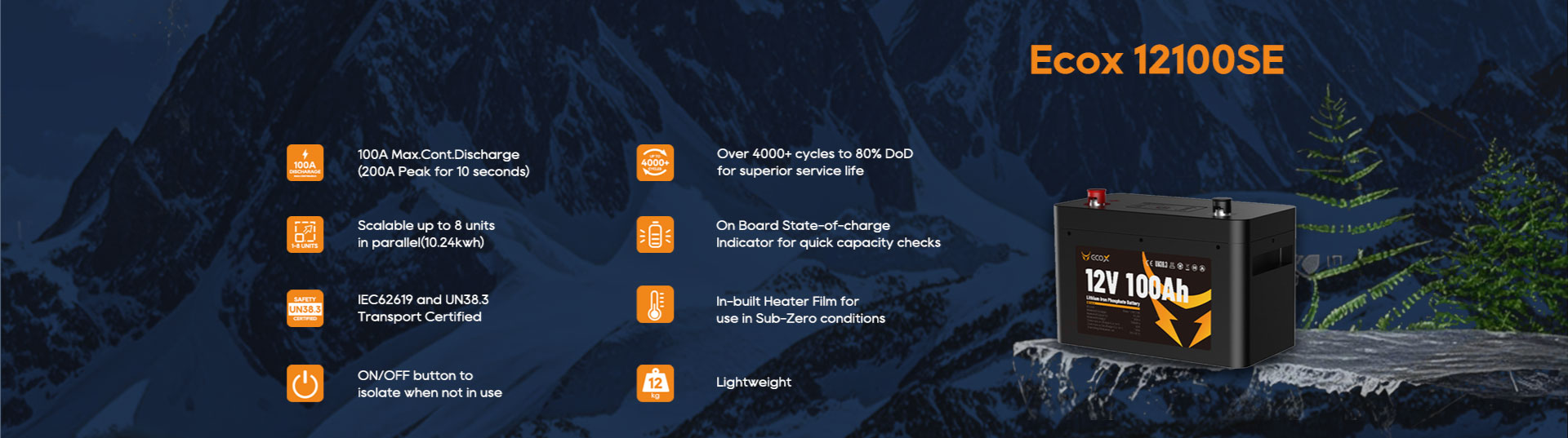 real-time monitoring. It has high cycle life, supports the parallel expansion of 8 batteries, and is equipped with a heating function for low-temperature operation.This battery is ideal for deep-cycle off-grid use in RVs, boats, trucks, and cabins and can replace deep-cycle lead-acid batteries.