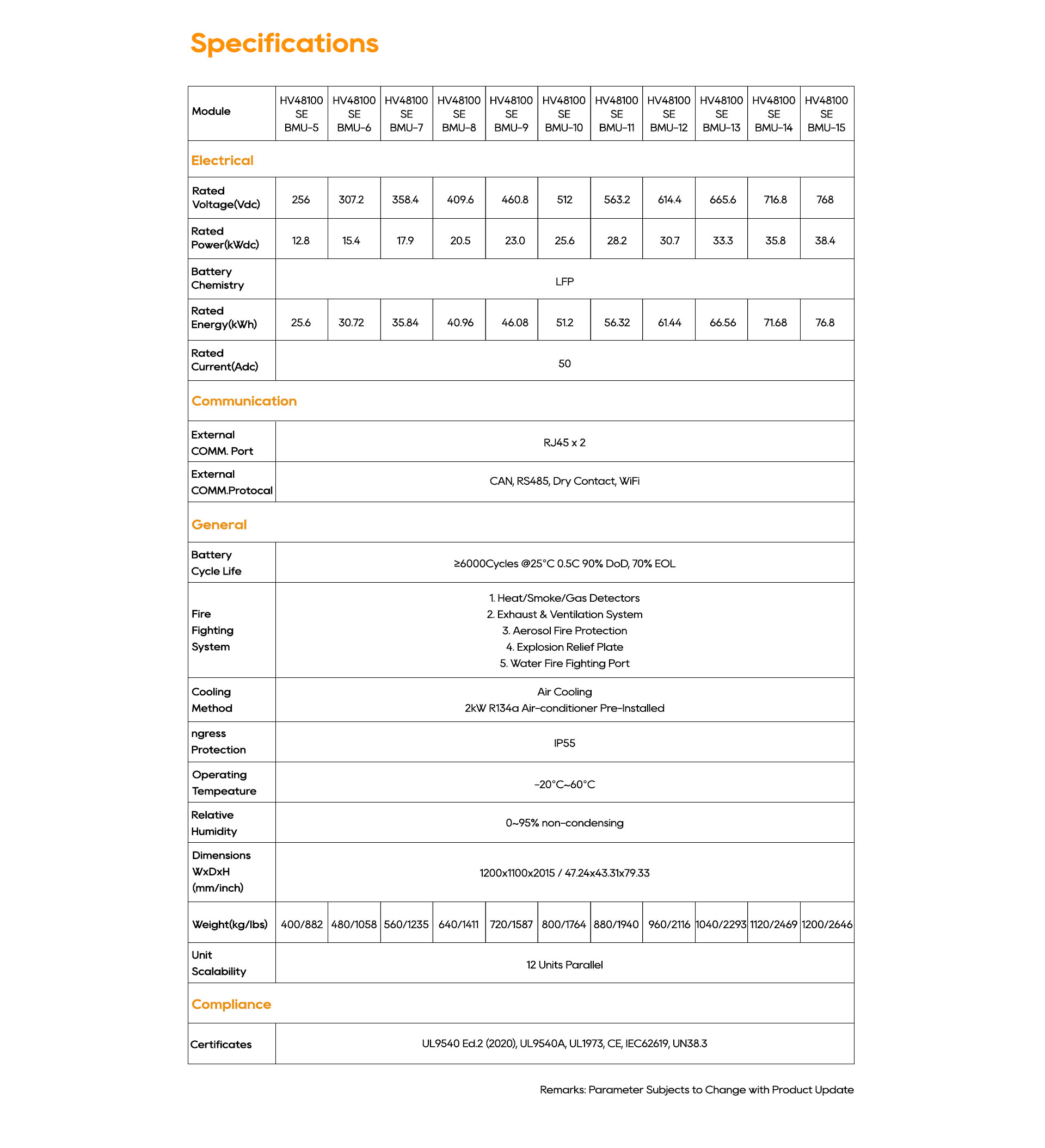 | Certificates | UL9540 Ed.2 (2020), UL9540A, UL1973, CE, IEC62619, UN38.3 | |||||||||||||
