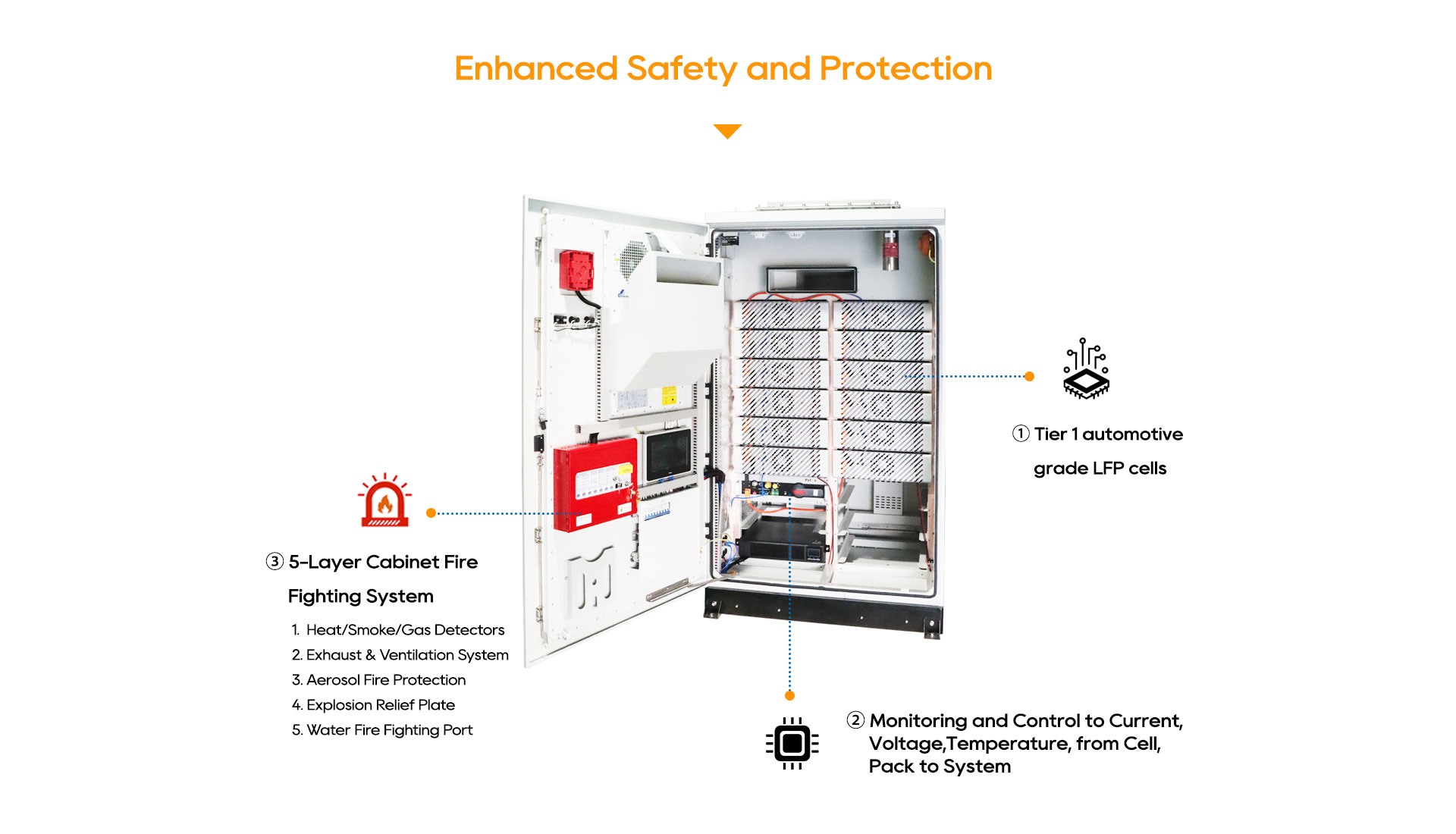 HV 48100 SE, an outdoor energy storage cabinet, features multi-level safety protection