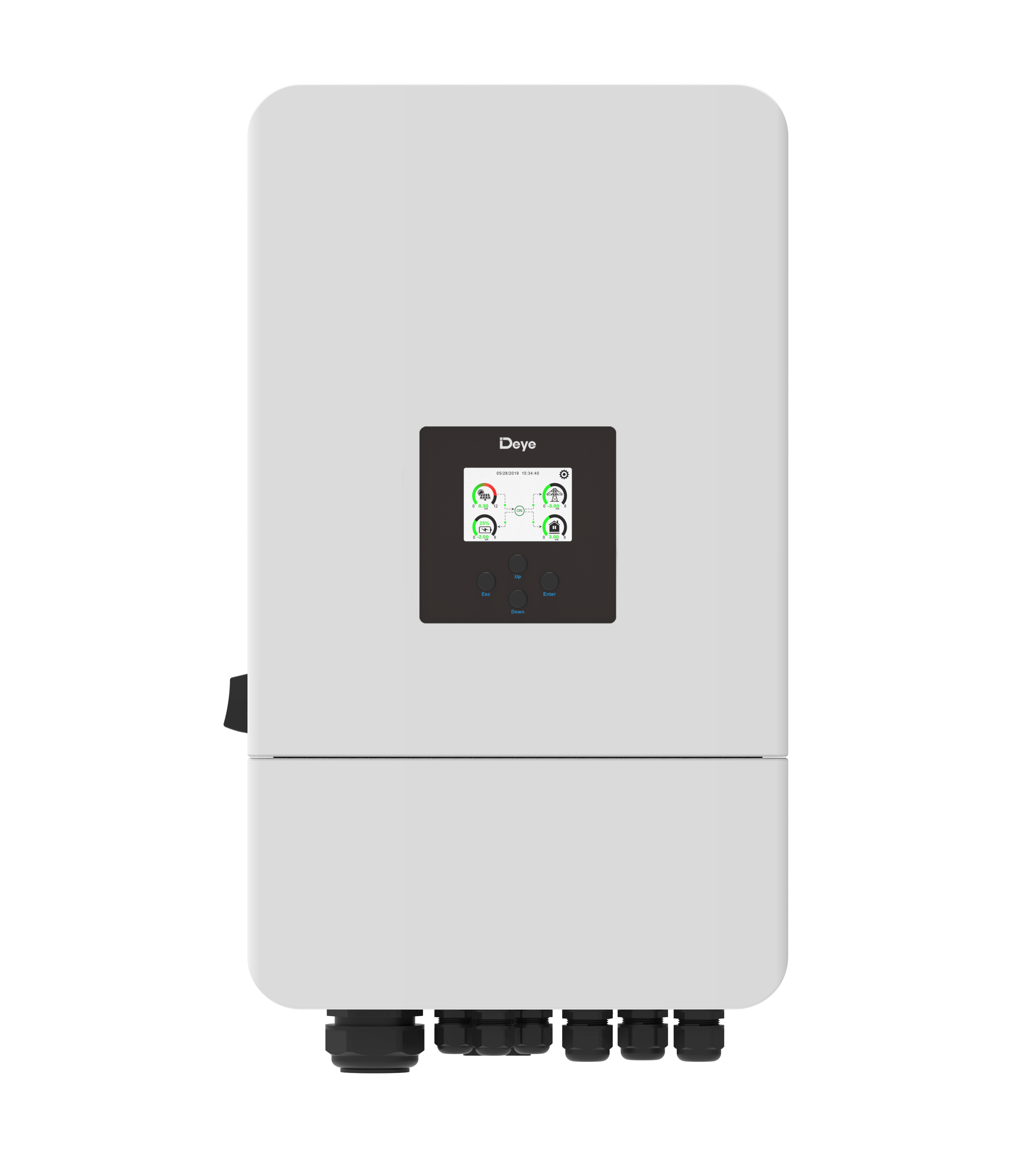 Inverter hybrid 5kW SUN 5K-SG-SG03LP1-EU, 1 pha thích hợp cho hệ thống Điện năng lượng mặt trời dân dụng và thương mại nhỏ, tối đa hóa tỷ lệ tự tiêu thụ năng lượng mặt trời và tăng cường năng lượng tiêu thụ của bạn. Trong ngày, hệ thống pin năng lượng mặt trời PV tạo ra điện sẽ được cung cấp ưu tiên cho các phụ tải. Sau đó, năng lượng dư thừa sẽ sạc pin qua Inverter Hybrid Deye SUN 5K-SG. Cuối cùng, năng lượng dự trữ trong pin lưu trữ sẽ đượcc giải phóng khi tải yêu cầu hoặc vào ban đêm. Pin cũng có thể được sạc bằng máy phát điện diesel để đảm bảo nguồn cung cấp không bị gián đoạn trong trường hợp mất điện lưới. Nó được trang bị cổng RS485 / CAN để giao tiếp pin