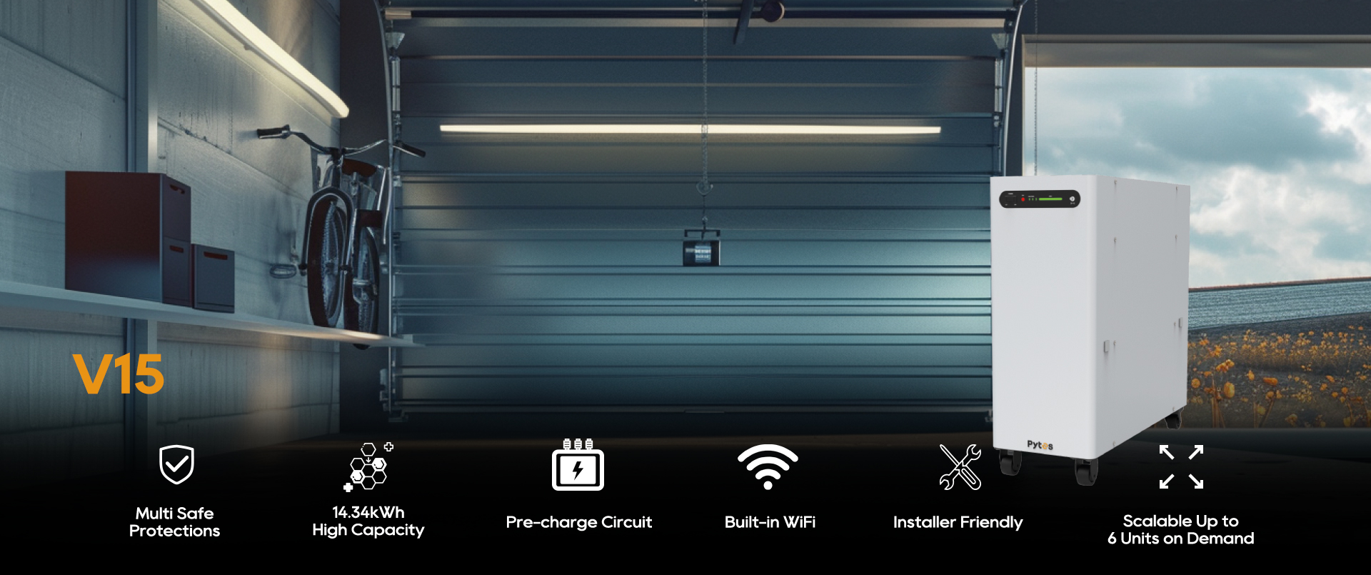 Pytes V15 is the latest innovation in home energy storage, offering a high-capacity 48V 300Ah lithium-ion battery with an impressive 14.34kWh storage capacity. Designed with multi-layered safety protections, including a built-in pre-charge circuit, V15 ensures reliable and secure performance. Its integrated WiFi allows for remote monitoring and firmware upgrades, keeping your system efficient and up to date. With an installer-friendly design, V15 is easy to set up and commission, saving time and effort. For expanding energy needs, the system is scalable up to 6 units, offering unparalleled flexibility to meet your household’s growing demands. Pytes V15 is your dependable partner for a smarter, safer, and more adaptable energy storage solution.