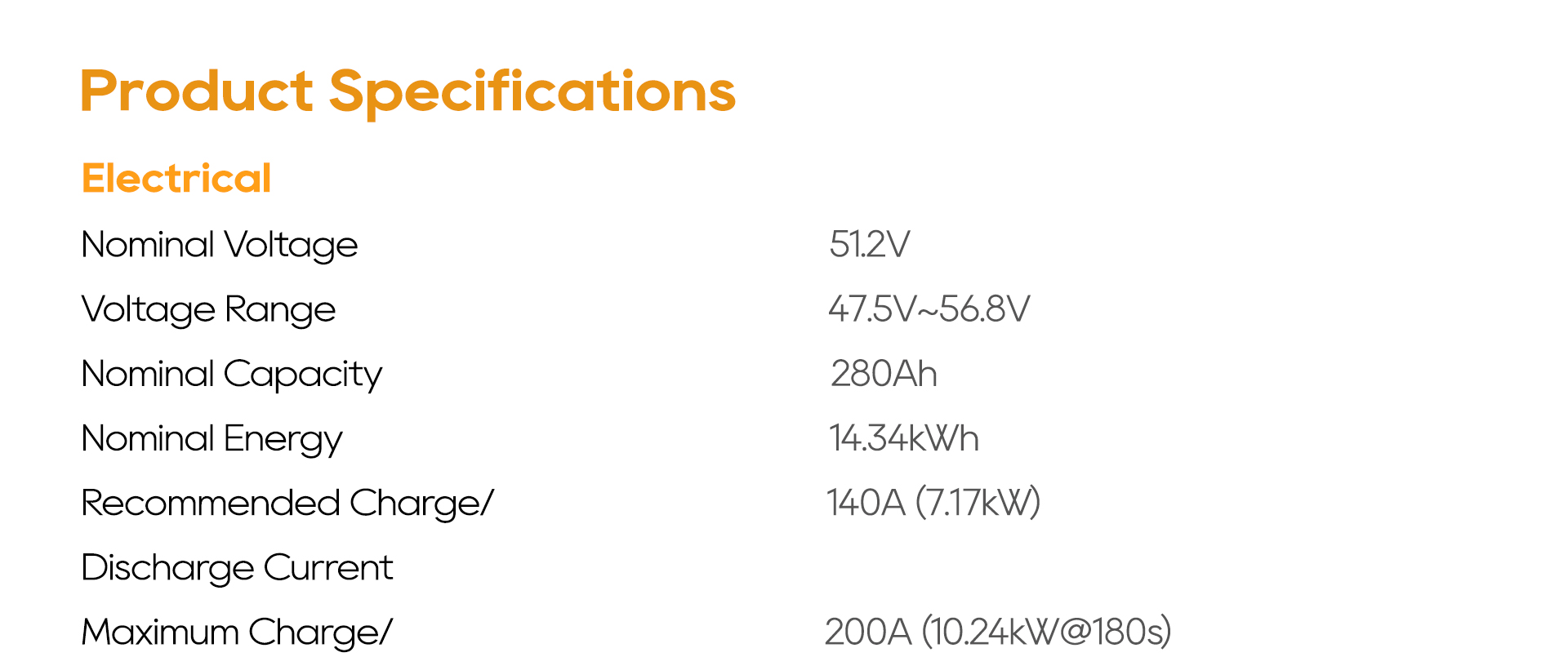 | Recommended Charge/Discharge Current | 140A@25°C / 77°F |